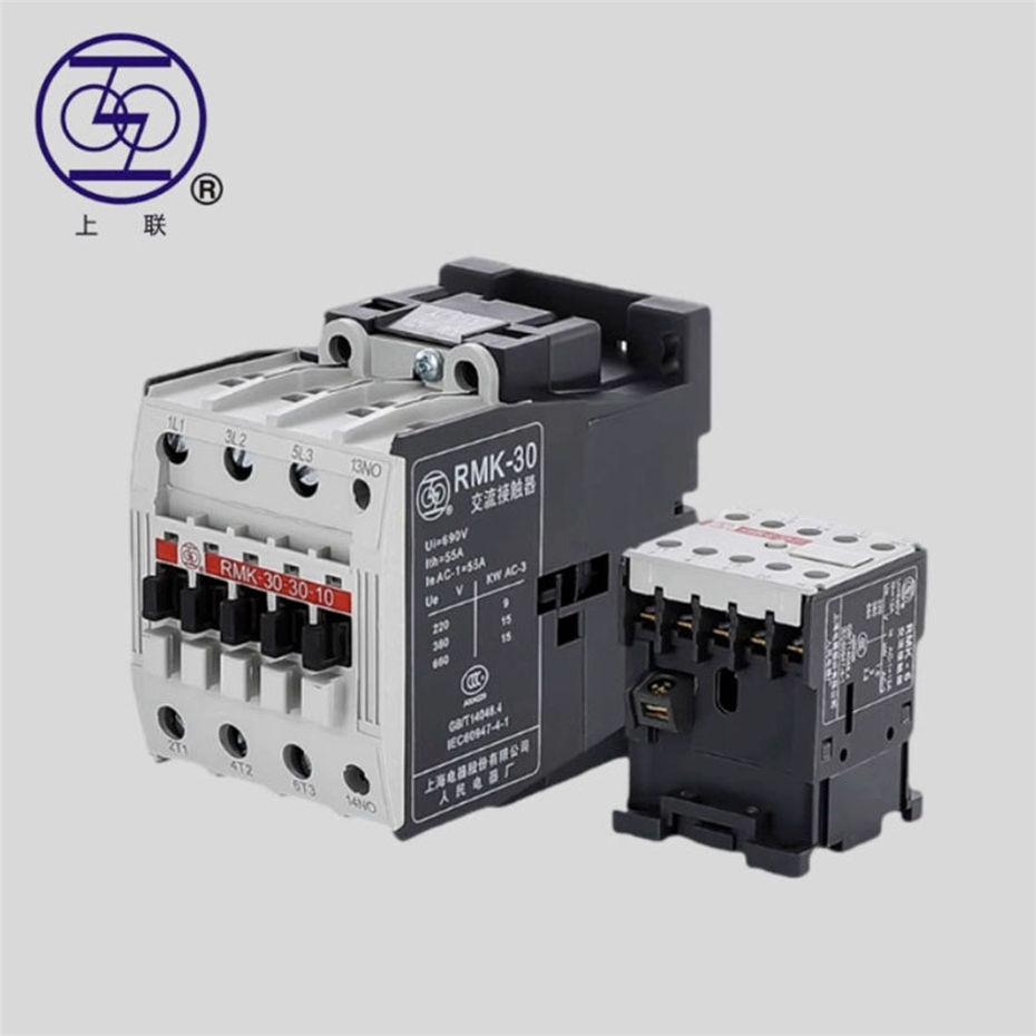上海人民电器厂的RMK接触器系列主要包括RMK9-30-10和RMK400-30-22等型号。RMK9-30-10接触器适用于主回路额定电压交流50Hz或60Hz,额定电压至660V,额定电流370A的电力系统中接通和分断电路,并可与适当的热过载继电器组成电动机起动器,以保护可能发生过载的电路。